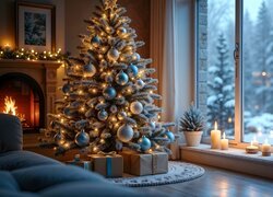 Tapeta z największą ilością wyświetleń: Oświetlona choinka i dom przy drodze z widokiem na kościół oraz miasteczko w zapadającym zmroku, dodana przez majka1407 Gratulujemy!