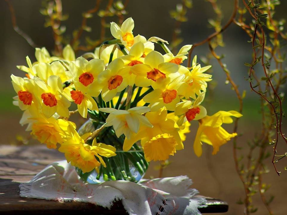 Tapeta z największym współczynnikiem wyświetleń/pobrań: Kolorowe pisanki w gniazdku obok kwiatów, dodana przez basikp Gratulujemy!