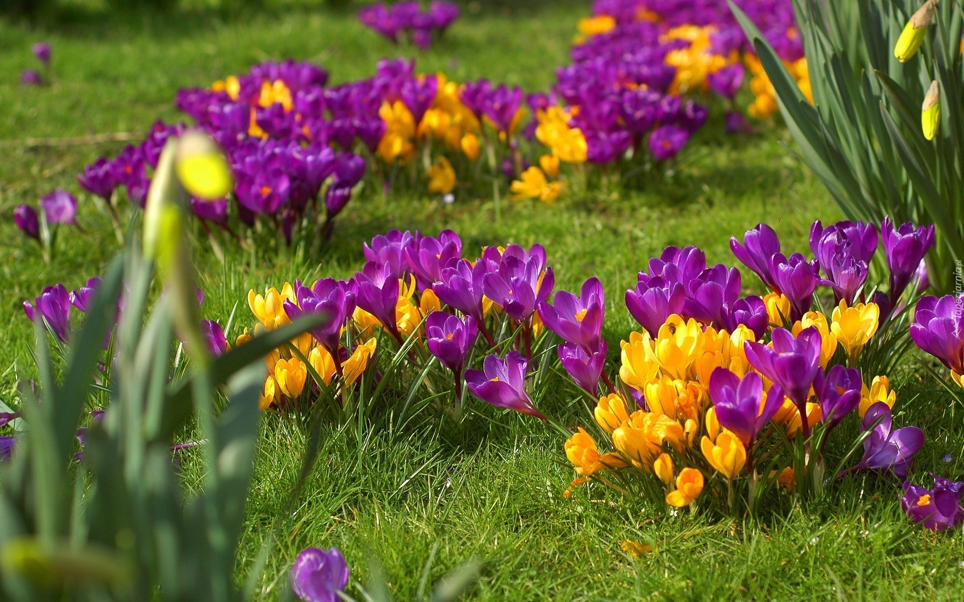Piękne kolorowe krokusy, widać wiosna przyszła.
