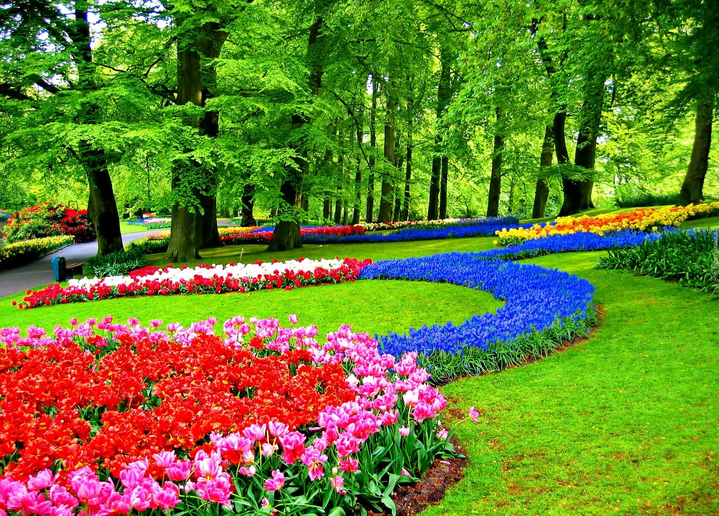 Przecudne kolorowy wiosenne klomby.